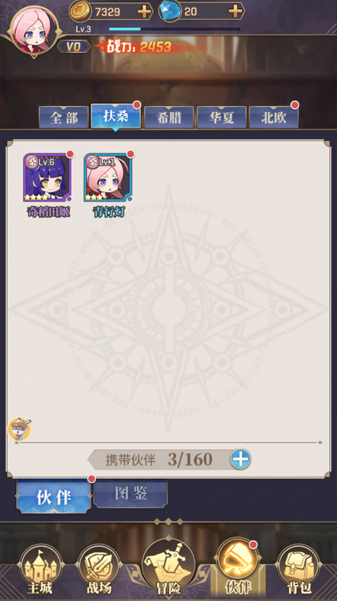 1、 游戏中按照星级共有158个伙伴,分为扶桑、希腊、华夏、北欧四个阵营,从低到高为1星到10星。伙伴包括8个1星N,8个2星N,16个3星R,16个4星R,16个5星R,8个5星SR,16个5星SSR, 4个5星SP。其中1星及2星伙伴仅可分解为伙伴经验及伙伴精华,仅SR/SSR/SP可从5星升级为10星,6个伙伴提升到300级后可以进行附魂,3星及以上伙伴可作为伙伴升星的材料。