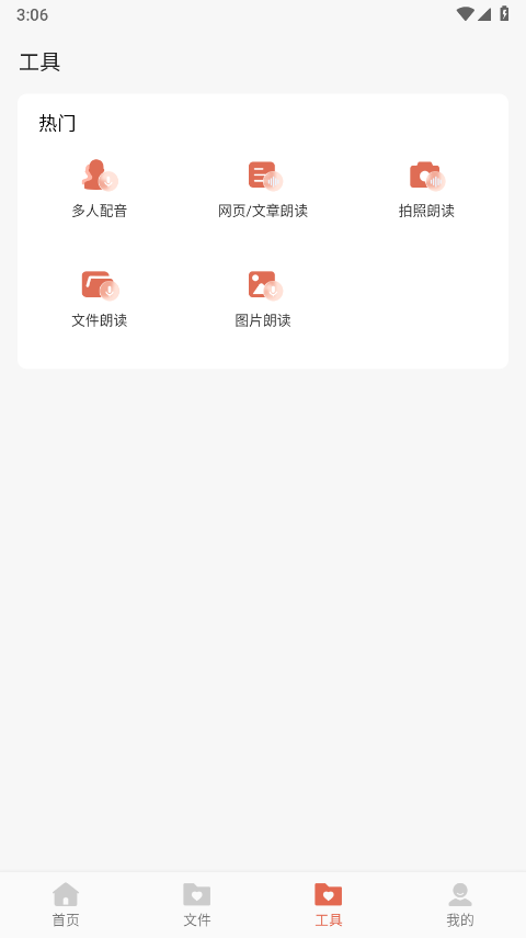 3、进入工具界面,可进行多人配音、网页或文字朗读、拍照朗读等功能。