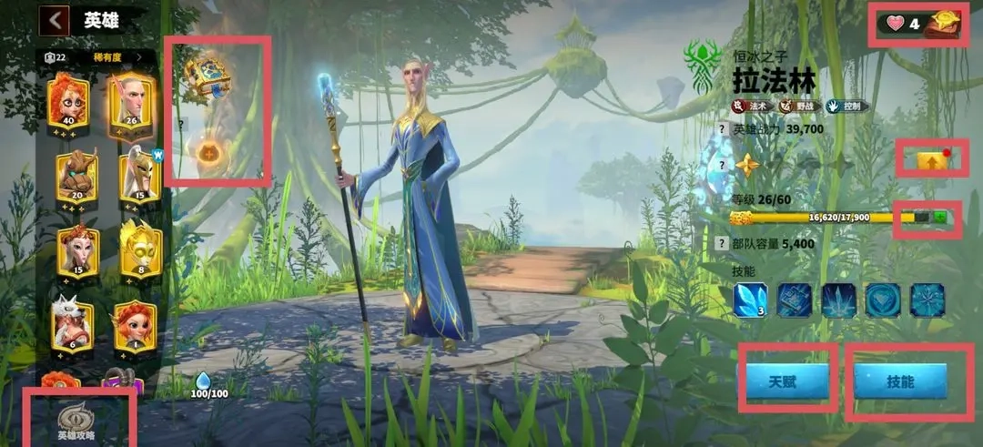 天赋:建议按照英雄攻略点,每个英雄有一次免费重置机会,后续用宝石,所以尽量不要点错。