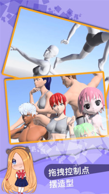 4.借助物理引擎,你能够如同摆弄真实的素体人偶那般,对3D人偶模型进行操控。不仅如此,还能随心所欲地掌控人偶上的各个控制点,摆出各式各样的造型姿势,从而获得更为精准且丰富多样的造型效果。