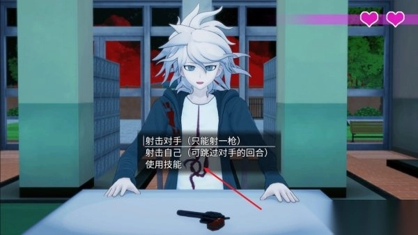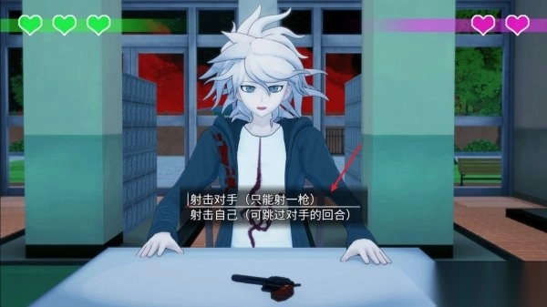 1游戏启动后,首先会进入一段剧情对话,结束后游戏正式开启。此时,你面前会出现一把左轮手枪,你能够选择向自己开枪,或者向对方开枪。