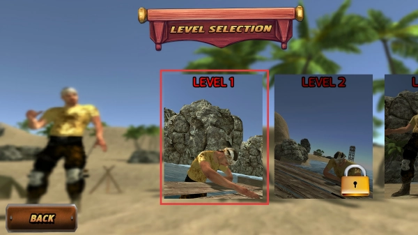 2、在关卡选择页,点击【LEVEL1】,开启首场海岛求生挑战,探索生存之道。