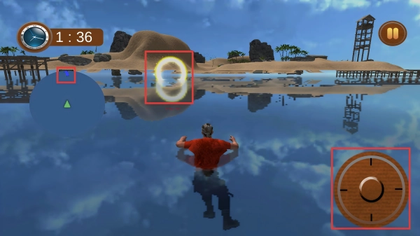 3、在海上场景,操控角色游向【发光圆环】,利用右侧按钮调整方向,别偏离目标啦。