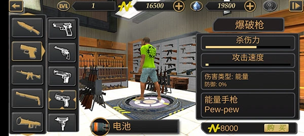 价格为8000金币,伤害类型属于能量;依靠电池运作,杀伤力处于中上水平,攻击速度极其缓慢;武器为能量手枪Pew - pew