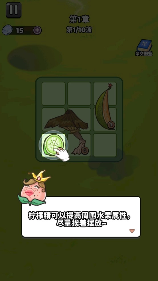 1、不同的格子位置,会影响水果卡牌在战斗中的表现。