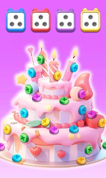 1、以螺丝作为消除对象,玩家通过滑动,使三个或以上相同的螺丝连成一线即可消除。