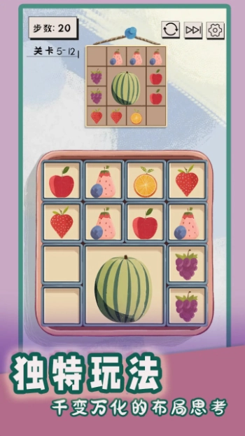3、独具创新的华容道玩法,每一步操作都影响全局,对思维的考验更上一层楼。