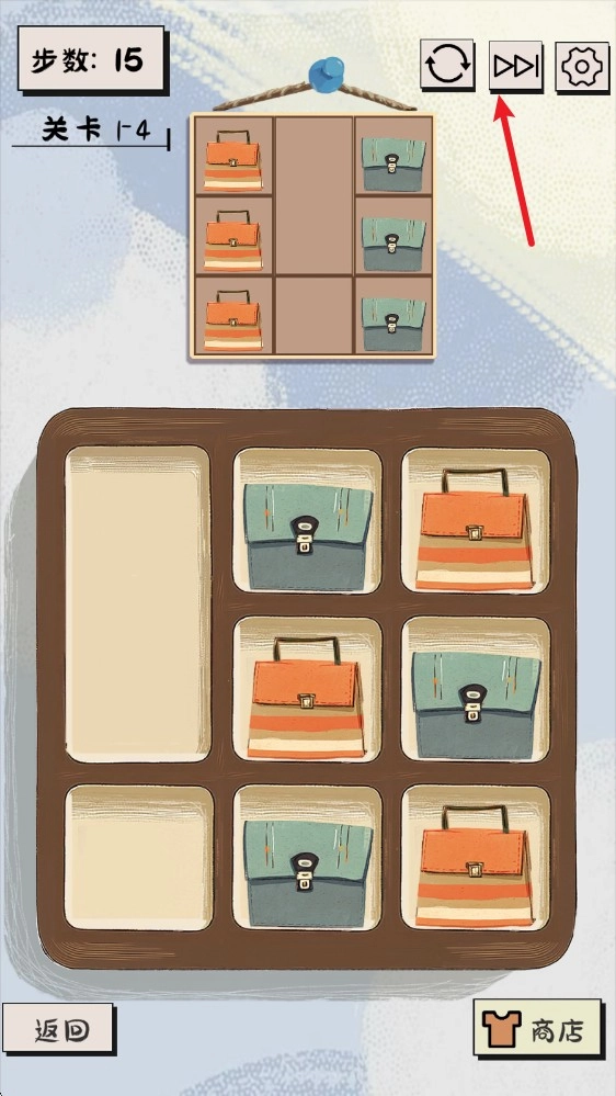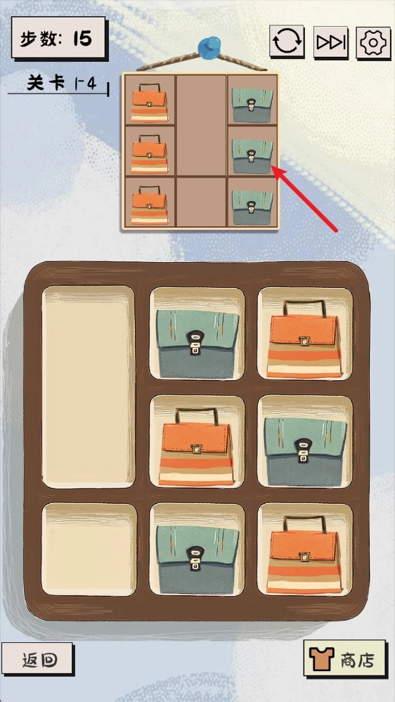 1、在每一个关卡里,我们要通过挪动下方的物品来完成闯关,只要让物品到达上方对应的位置就可以了。