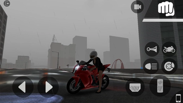 2. 驾驶界面的左侧设置有转向箭头,右侧则是喇叭、载具切换、灯光以及刹车等功能按钮。通过对这些按钮进行灵活的组合操作,即便是在雨天路滑的情况下,也能够稳定地操控车身。