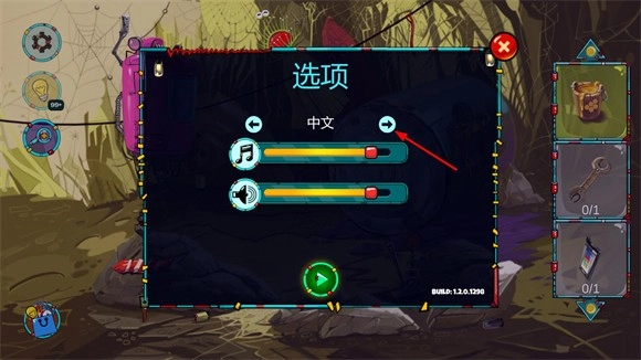 2、接着点击左右箭头以切换语言,最终选择中文,便能把游戏切换为中文版。