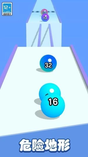 1、玩家操控的小球在合并相同数字时会增大,增加游戏的策略性。