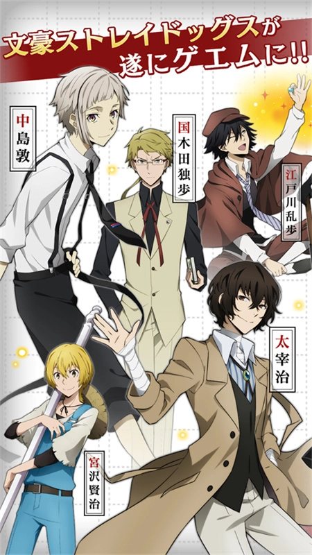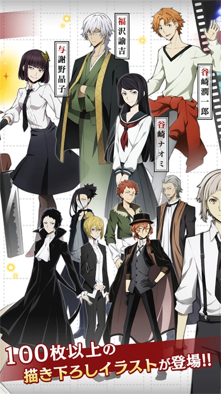 拥有文豪之名的游戏角色纷纷集结。这里面,有被称作横滨F4的中岛敦、太宰治、芥川龙之介、中原中也;有两大组织的头目福泽谕吉、森鸥外;还有泉镜花、江户川乱步、织田作之助、坂口安吾、费奥多尔等一众深受欢迎的人气角色。你极有可能将他们召集起来,让他们成为你队伍中的一员。