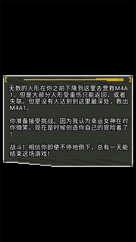 这是一款以《少女前线》为元素打造的像素地牢游戏。它在玩法上与传统像素地牢游戏别无二致,然而剧情与角色设定却源自《少女前线》。游戏剧情不仅保证不会出现ooc的情况,而且相当精彩。虽然它属于像素游戏,但画面清晰,动作流畅,竖版的操作方式也更为简便。