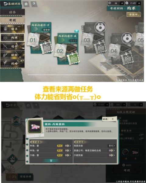 3、通常解锁考核的条件并非仅有一种资源道具,然而体力是有限的。在此推荐各位收藏家点击相应资源,查看其获取来源。一旦缺少资源,务必采取此操作。毕竟有不少资源可在易市直接兑换,体力自然是能节省就节省。