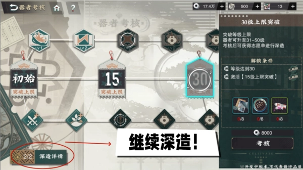 1、当各位收藏家顺利通过主线关卡后,考核功能将很快被激活。毫不夸张地讲,器者的主要练度基本都得依赖这个考核功能。