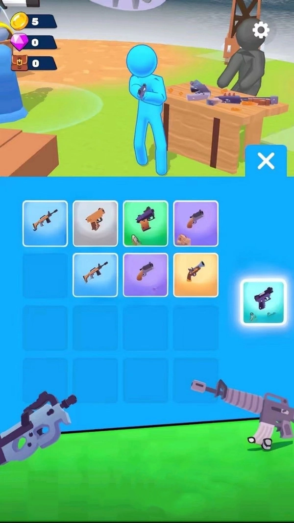 1、通过战斗收集资源,利用武器合并系统,将低级武器升级为更高级别的神器。