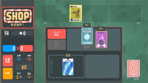 5、成功通关后,玩家将会进入商店界面,在这里能够使用通关所获得的金币,来解锁全新的小丑牌以及道具牌。