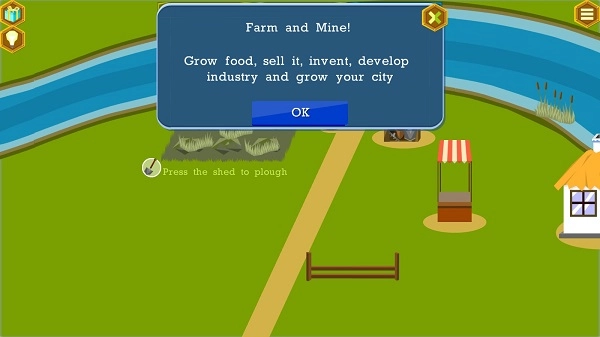 1、进入游戏后,提示已给出。大致意思是种植粮食并卖出,进行工业的发明与发展,推动城市发展。