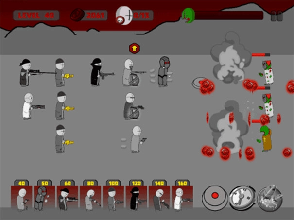 3、玩法与《植物大战僵尸》类似,你得阻拦这些僵尸的进犯,按顺序在僵尸入侵的路径上安置人物。