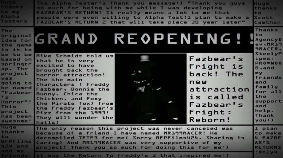 FazbearReturn1手机版是知名恐怖游戏IP《玩具熊的五夜惊魂》的一款特殊同人游戏。