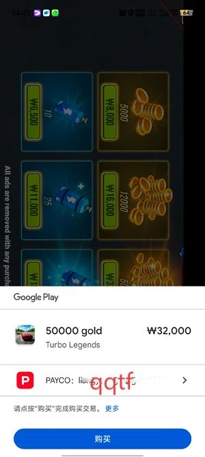 在支付界面点击购买,完成支付后获得金币。