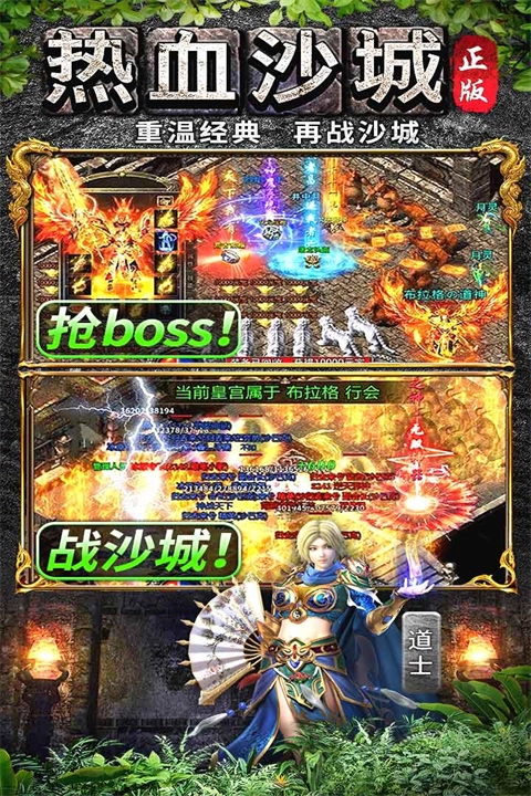 2、游戏里精心设置了丰富多样的PVE副本以及限时活动,在挑战BOSS、收获神装的过程中,乐趣源源不断。与此同时,令人热血沸腾的PVP玩法全方位开放——备受瞩目的沙巴克攻城战会按时开启,战场上刀光剑影闪烁,热血对决一触即发,就等你来加入战斗!