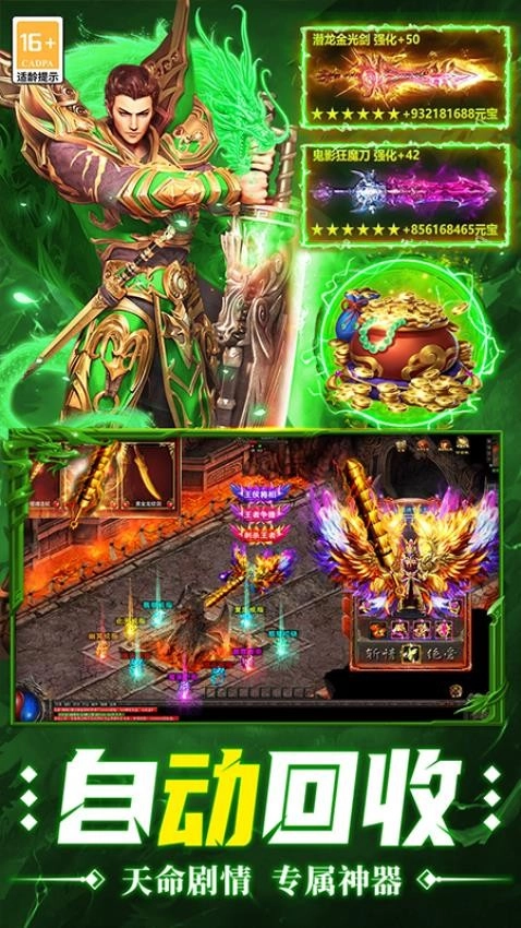 3、通过挂机打金,可轻松获取元宝。挂机过程中得到的所有装备,都能点击出售或回收,借此获取元宝,用来购买其他装备道具,提升自身战力。