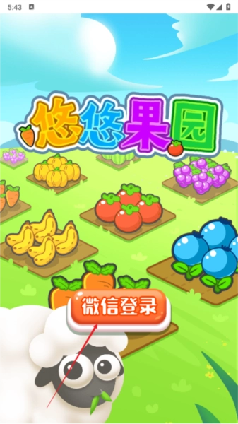 1、开启悠悠果园,寻得登录按钮并点击,完成登录动作,进入果园主界面。