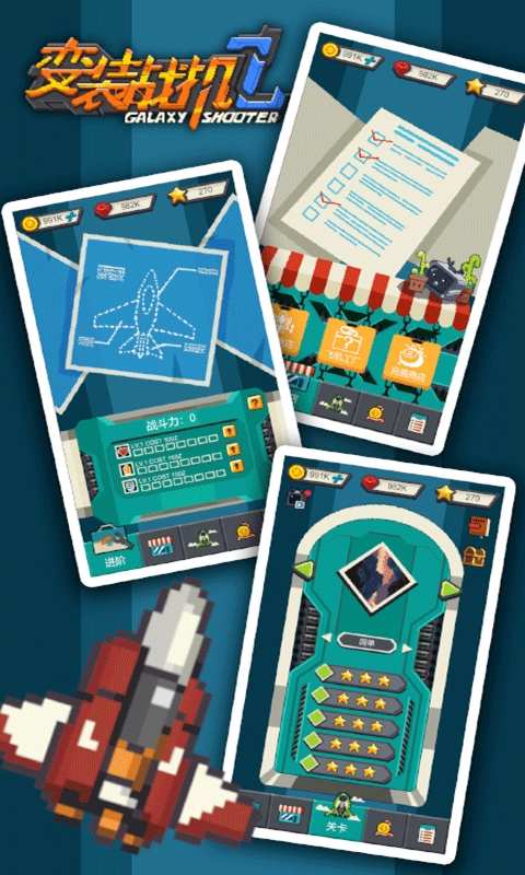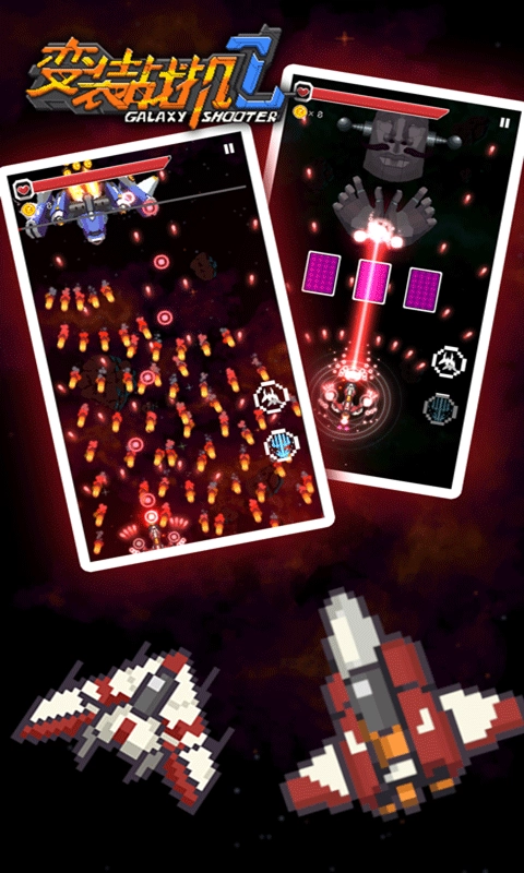 变装战机2银河射击在传统飞行射击玩法的基础上,增添了强化进阶、飞机搭配、飞机生产等内容,而且关卡难度也能进行多方位自定义设置。