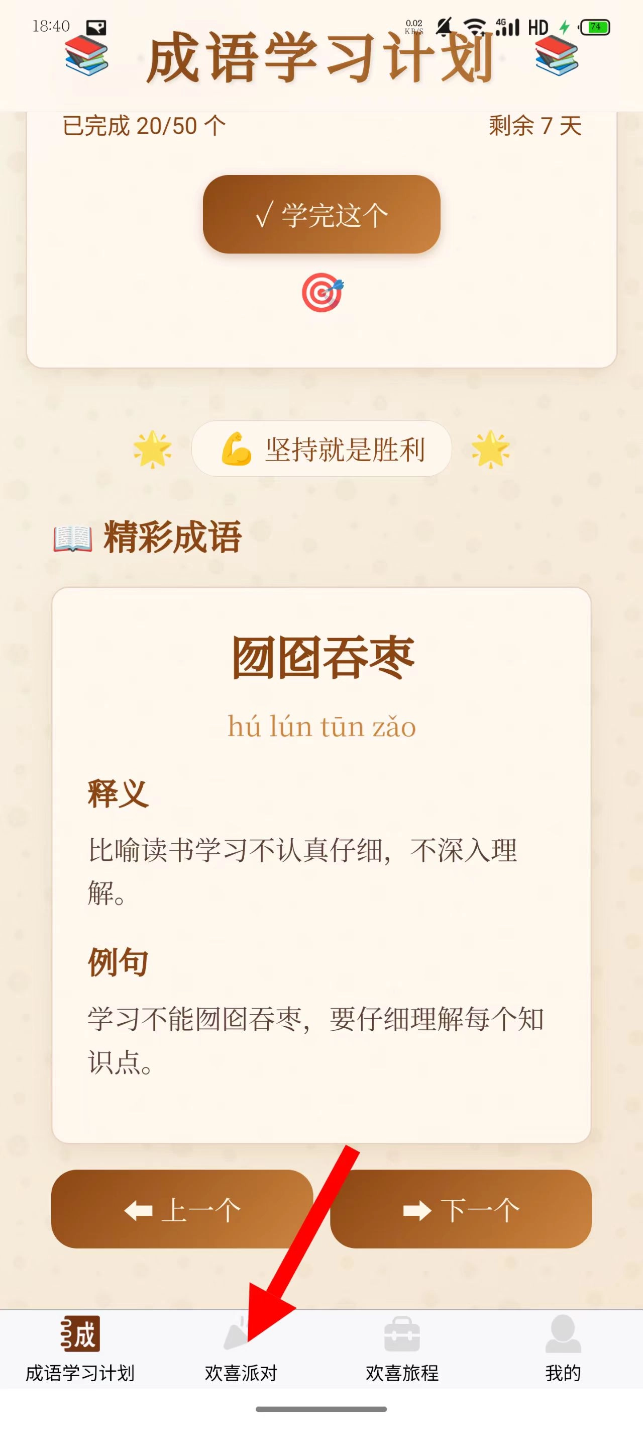 1. 个性化学习计划:摒弃固定学习量模式,依据个人时间灵活规划。通过进度条可视化设计,解决学后易忘且不知进度的困扰,有效助力成语高效积累。