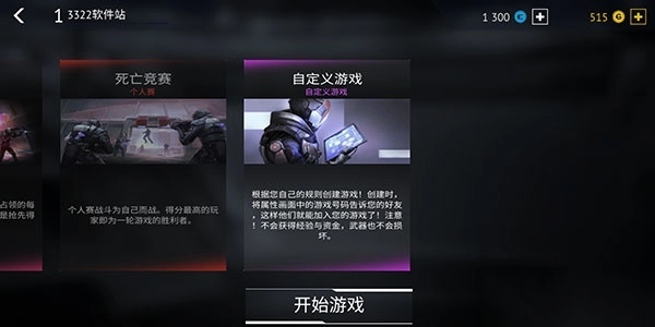 2、在模式列表中,选择最后一个【自定义游戏】模式,点击下方的开始游戏。