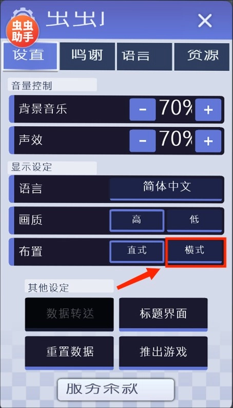 1、进入游戏后默认竖屏,点击右上角【齿轮图标】打开设置