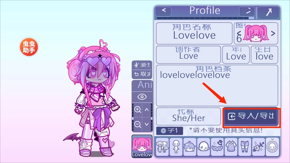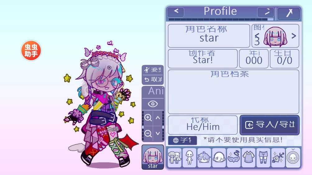 虫虫助手汉化,并且多款人设,直接导入人设,获得对应的服装穿搭