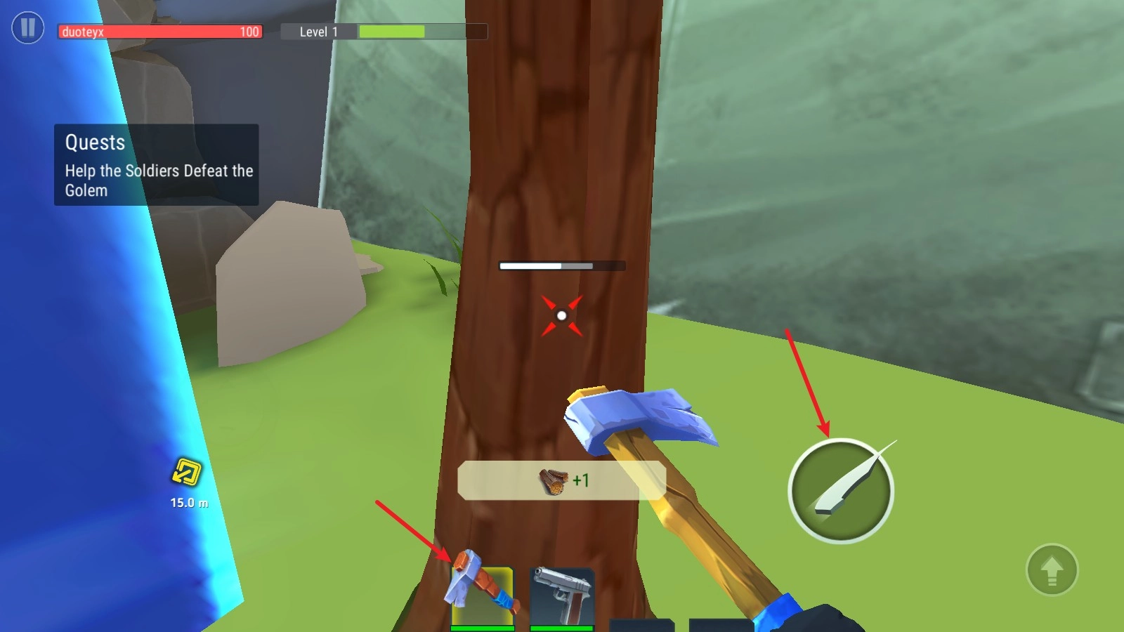 6、不仅如此,点击下方可切换不同武器,比如切换至斧头就能用来伐木。
