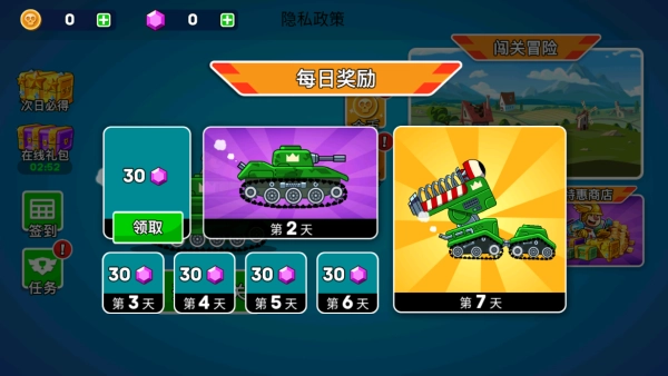 1.进入游戏后可以领取奖励,连续七天登录每天都有奖励可领,千万不要错过哦。