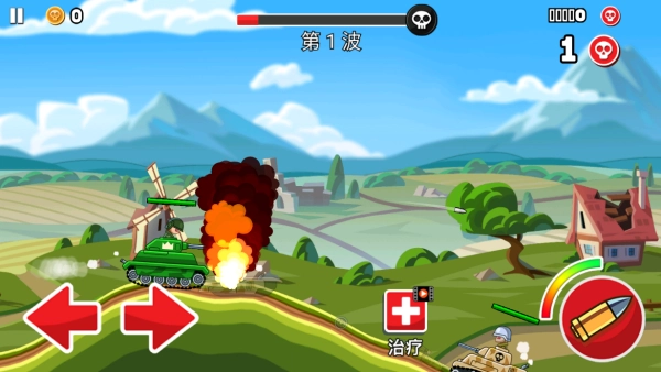 5.进入关卡后,使用左侧按钮来控制坦克的前进后退,使用右侧来瞄准发射导弹。