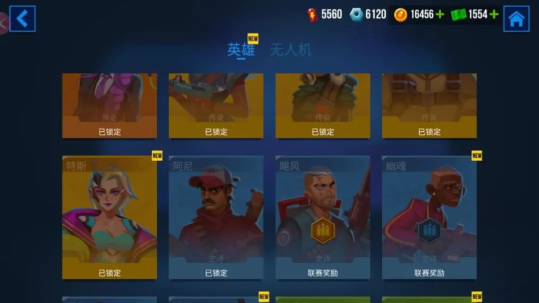 另外,游戏内还有部分英雄的获取是通过提升联赛等级解锁获取的,比如飓风,幽魂等等。可以在联赛界面的右侧滑动查看每个阶级的奖励。