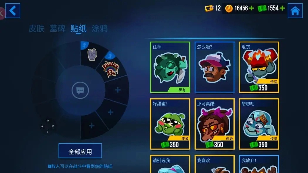 要是你渴望更酷炫的击杀显示效果,以及游戏里精美的涂鸦,只需点击英雄界面,就能进行装备更换啦。具体操作是,打开英雄选择界面,在界面下方找到衣架图标并点击进入,在这里,你能够更换英雄的皮肤、击杀墓碑、贴纸还有涂鸦。选中你心仪的图案道具后,点击“全部应用”,如此一来,就能在对局中使用这些道具啦。