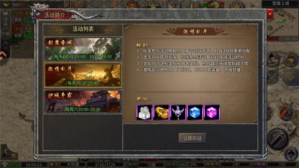 4、增添跨服对战、组队攻城等丰富玩法,能够承载万人规模的线上实时竞技。跨服PK包含1v1单挑、3v3组队、5v5阵营战以及百人沙城争霸等多样模式,技术精湛的玩家可依靠龙纹阵法触发全屏雷暴AOE效果,让经典的攻沙热血场景再度重现。