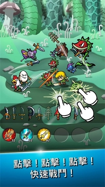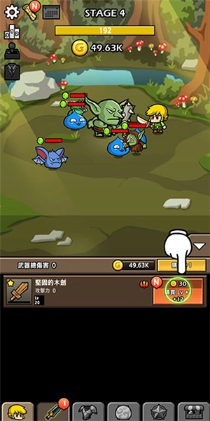 1、游戏刚开始的时候,我们什么都还没解锁,因此需要不断点击屏幕来攻击怪物。