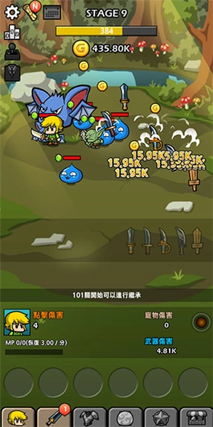 6、武器解锁后会自动帮我们攻击怪物,这也是游戏放置玩法的体现。