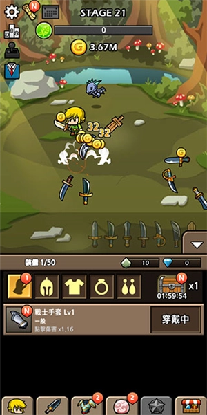 9、解锁装备玩法之后,我们还能为主角穿戴上各种武器装备。