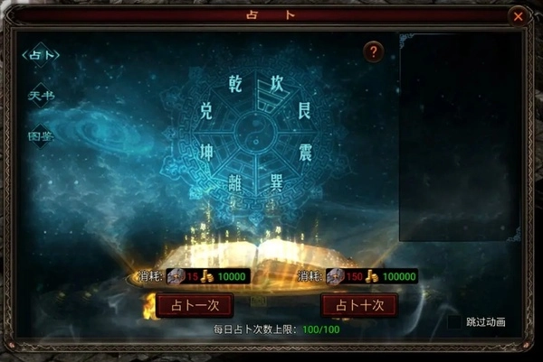前往天书-占卜系统中进行占卜可以获得天书材料以及吉人天相效果