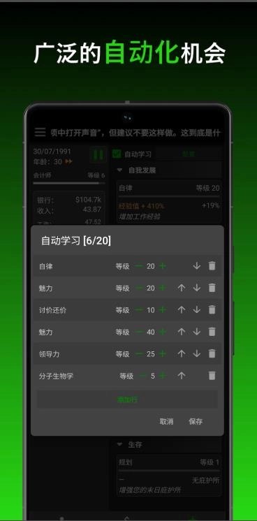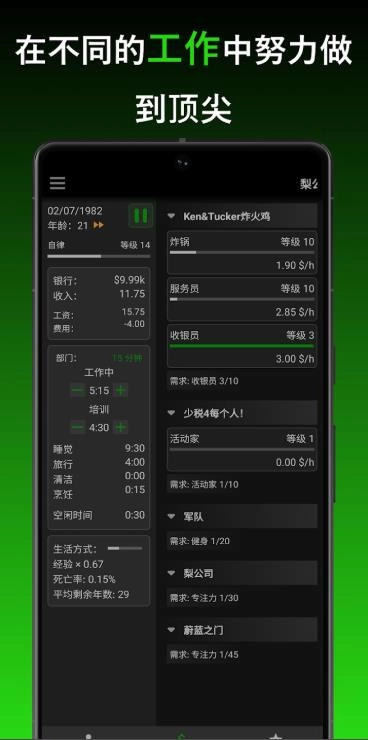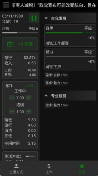 3、深度养成要素,玩家可借助技能训练、提升生活品质以及优化资源,打造出独属于自己的理想人生。