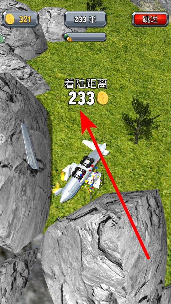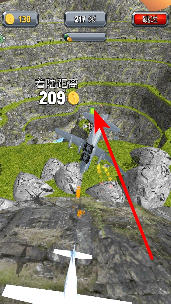 2、点击“开始游戏”后,操控飞机于场景内飞行。过程中需留意躲避诸如岩石之类的障碍物,同时密切关注着陆距离等相关提示,据此适时调整飞机的飞行状态,为实现安全着陆做好准备。