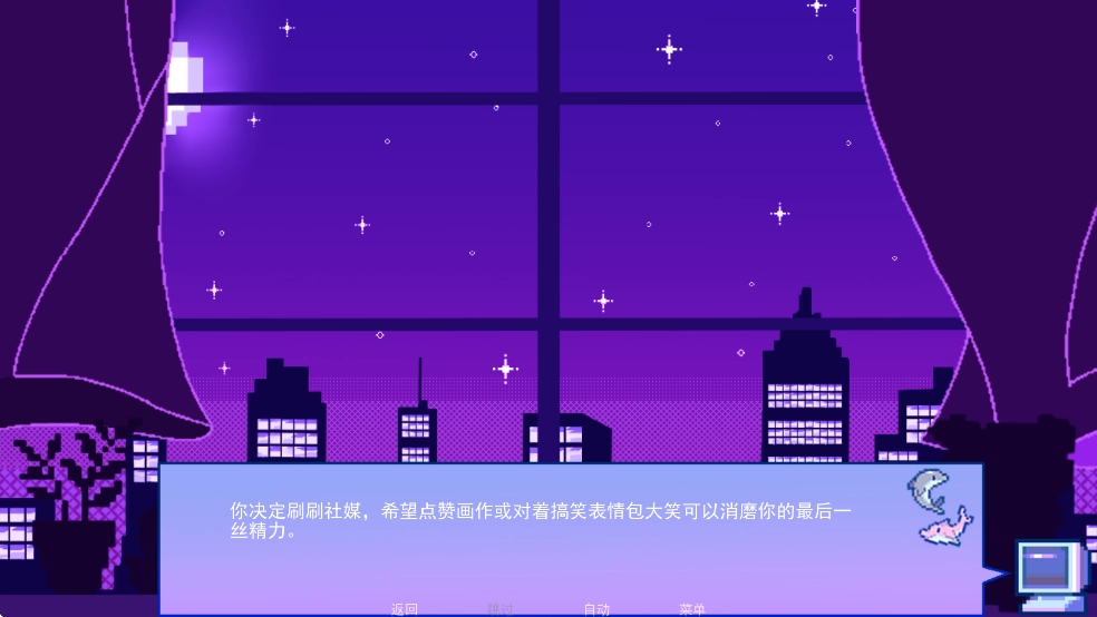 《不眠之窗》这款角色扮演剧情游戏,将背景设定于现代都市,以清新细腻的二次元卡通风格进行呈现,营造出静谧且稍带孤独感的夜晚氛围。