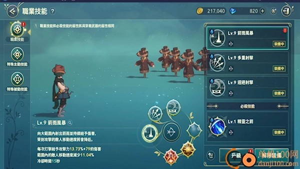 每个职业都可以在游戏显示多个技能,可以查看主动技能,查看被动技能,查看特殊技能