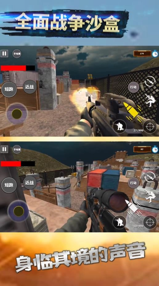全面战争沙盒,这是一款聚焦枪战射击主题的手机游戏。玩家一旦开启游戏,便会踏入广袤的战场,摇身一变成为精锐士兵,进而执行一连串极具挑战性的任务。在这片战场上,你需要与敌人展开激烈交锋,能自由自在地穿梭于各个地图区域之间,同时还要积极搜集资源与武器,并且充分发挥出它们的强大威力。尽情展现你的射击技巧,灵活运用多种多样的战术策略,合理规划资源分配,顽强坚持到最后一刻。如此,一场紧张刺激的冒险之旅便正式拉开帷幕。
