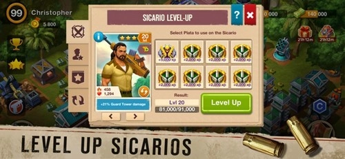 2、招募与建设:挑选Plata,雇佣sicarios并构建您的防御体系。收集各类sicarios,对其进行升级,让他们守护您的可卡因毒枭基地,同时为生产增添奖励。