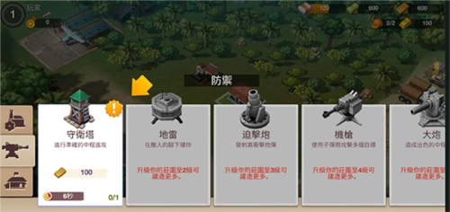 1、进入到卡特尔战争游戏中之后,第一步我们需要建造一个守望塔达到防御领地的效果;